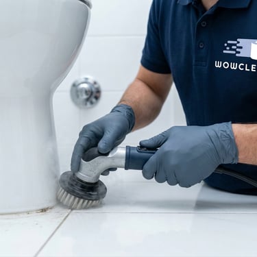 ✔ Floor micro-scrub around toilet zone
