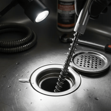 Mechanical cleaning is performed using a compact professional cable machine that allows us to clean inside the drain line and remove buildup that cannot be treated with liquids alone.